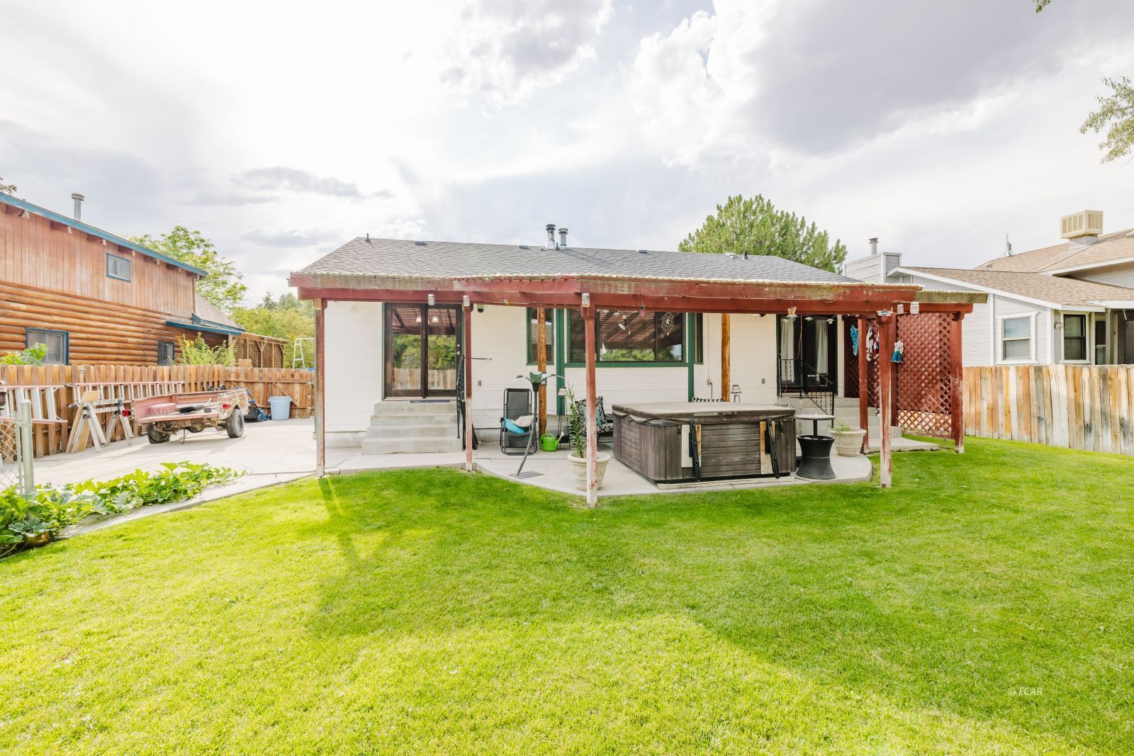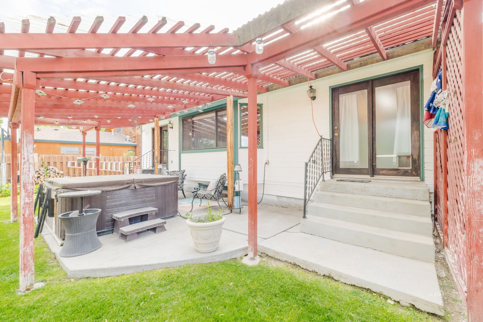 Welcome to this spacious 4 bedroom, 3 bath ranch-style home that combines comfort, style, and convenience. Step inside to find an inviting open floorplan, perfect for both everyday living and entertaining. The updated kitchen features modern finishes, ample counter space with eat in bar, and flows seamlessly into the living and dining areas. The primary suite offers a private retreat with shower and double closets. Three additional bedrooms provide plenty of space for family, guests, or a home office. Basement area has a wood burning stove and large living area. Outdoors, you'll love the beautifully designed backyard with a pergola-covered patio, relaxing hot tub (negotiable to stay), garden area and room to play. Practical features include RV parking on the side and a location that's just minutes from schools, shopping, and dining. This home is the perfect balance of comfort and convenience-don't miss the chance to make it yours!