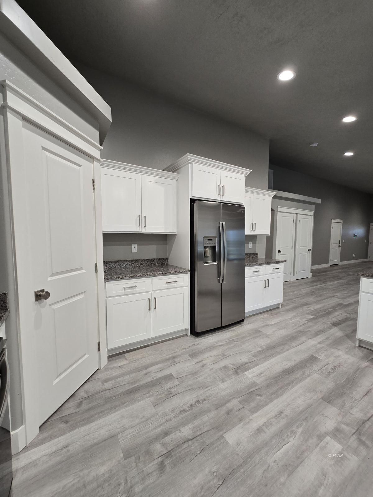 Pride of ownership expresses all! Feel at ease when you walk into this admirable, flawless home that sits on a 1.86 acre corner lot & with a private well! Upon entry of front door you are welcomed with a beautiful open living & kitchen - plenty of space to entertain, 3 bedrooms, 2 baths, laundry, oversized, insulated, & painted 3 car garage, covered front porch and covered, lighted. back patio. Master bedroom with vaulted ceiling & plant shelf, tile bath/shower, & walk in closet. Custom built white cabinetry with elegant hardware, granite countertops, Moen brushed nickel fixtures, hard surface & water proof flooring, upgraded & larger size windows, keyless entry on all exterior doors, plenty of LED lighting, & Vivint security system throughout. In addition, property also offers a 32x42 shop, 16x8 storage shed, heavy duty fencing surrounding entire perimeter with an electrical front entry gate, & pine trees when mature, creating a peaceful outdoor atmosphere! Come take a look today!