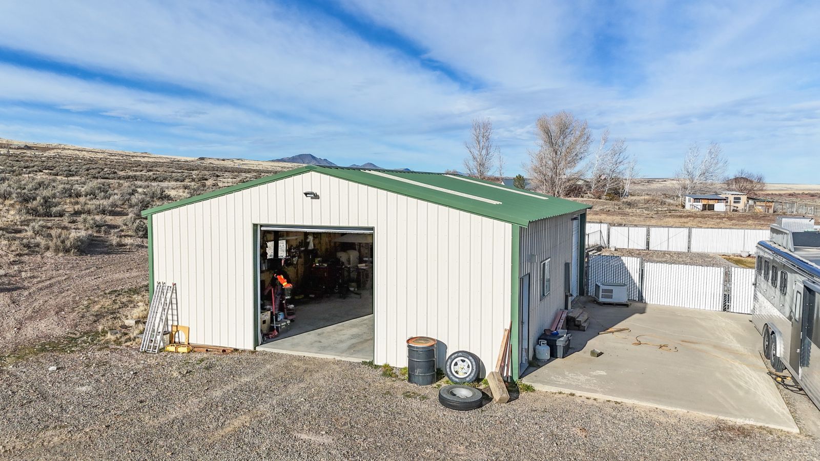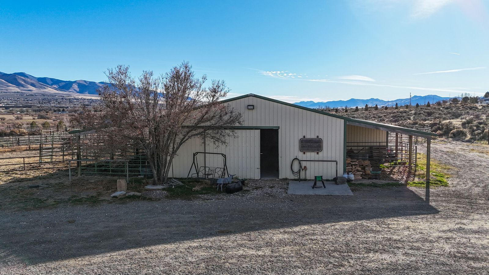 Lot Description Curb & Gutter, Dog Run, Fenced- Full, Gutters & Downspouts, Horses Allowed, Lawn, Sprinklers- Drip System, Sprinklers- Automatic, Storage Shed, Trees, View of City, View of Mountains, View of River, View of Valley, Work Shop, Barn/Out Building, Corrals/Stalls, Garden Area, Deck(s) Covered, Legal Access: Yes, Faces: East, Tack Room