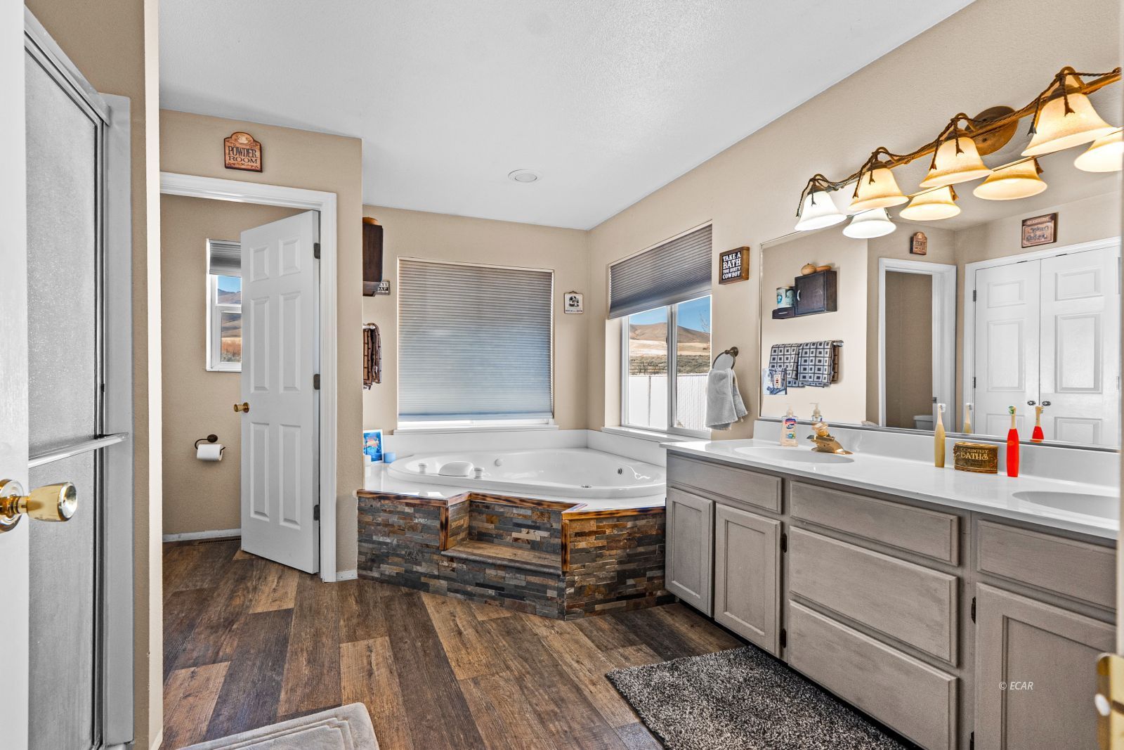 Features Ceiling Fan(s), Fireplace- Wood, Flooring- Laminate, Tub- Spa, Walk-in Closets, Den/Office, Stove- Propane