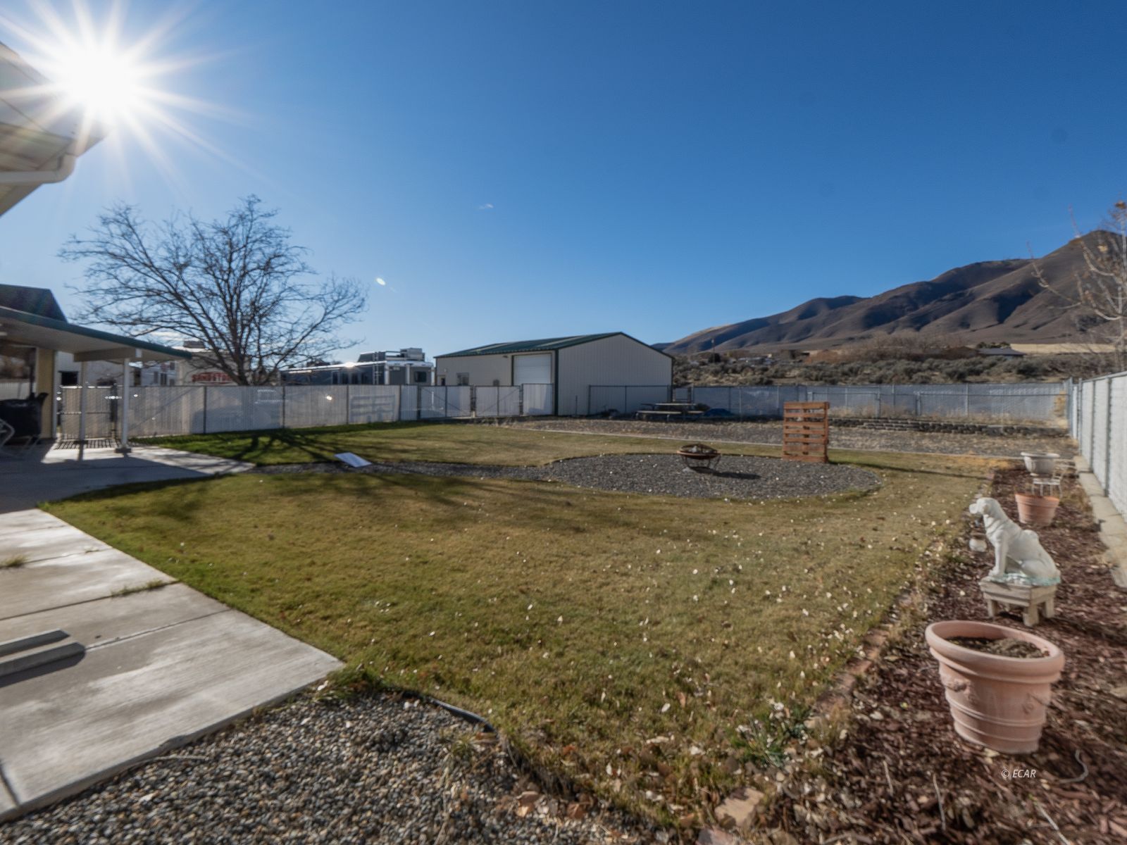 Exterior Features Curb & Gutter, Dog Run, Fenced- Full, Gutters & Downspouts, Horses Allowed, Lawn, Sprinklers- Drip System, Sprinklers- Automatic, Storage Shed, Trees, View of City, View of Mountains, View of River, View of Valley, Work Shop, Barn/Out Building, Corrals/Stalls, Garden Area, Deck(s) Covered, Legal Access: Yes, Faces: East, Tack Room