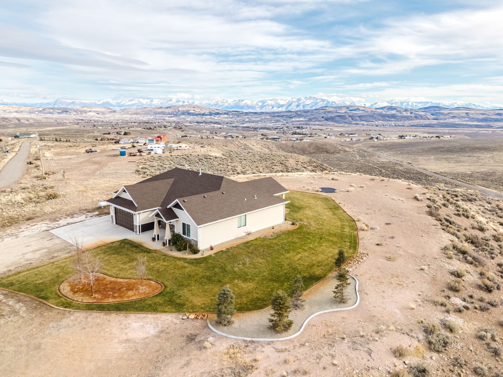 A stunning blend of modern comfort, wide-open space, and unforgettable views. Beautiful 4-bedroom, 2-bath home built in 2020 on 10 acres with exceptional mountain and city views. This 2,155 sq. Ft. property offers an open-concept layout with a spacious living, dining and kitchen area, abundant natural light, living room includes a pellet stove for added ambiance and comfort. The kitchen features stainless-steel appliances, new dishwasher, ample cabinetry, and a reverse osmosis system. All the bedrooms are well-sized, the primary suite provides a relaxing retreat. The covered patio invites you to slow down, breathe deeply, and soak in views that feel almost unreal. The landscaped yard adds beauty and polish, while the full acreage offers endless opportunity-hobby space, recreation, expansion, or simply unmatched privacy. Enjoy the wide-open acreage perfect for recreation, animals, or future shop upgrades. All of this, while still being just minutes from schools, shopping, and everything Elko has to offer. This home is well-maintained and move-in ready. A great opportunity to enjoy space, privacy, and modern comfort in a desirable Elko location. Call for a showing today!!