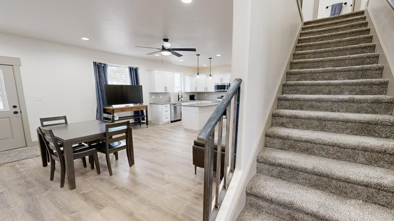 Situated close to Mountain View park and amenities. This new townhome development is centrally located with all the updates of a new home. This 3 bedroom, 2.5 bathroom home has 1,647 sq ft with a 2 car garage. With all the usual Koinonia Construction finishes, soft close painted cabinets, upgraded countertops, stainless appliance package, tankless water heater, and luxury vinyl plank flooring. Open concept main living area with half bath for convenience and lots of under stair storage. The owner suite is on the front side of the house overlooking the Mountain View Park area. Additional guest parking is available on this private street. Property features a completely fenced yard. Owner/Builder is a licensed Nevada Real Estate Agent.