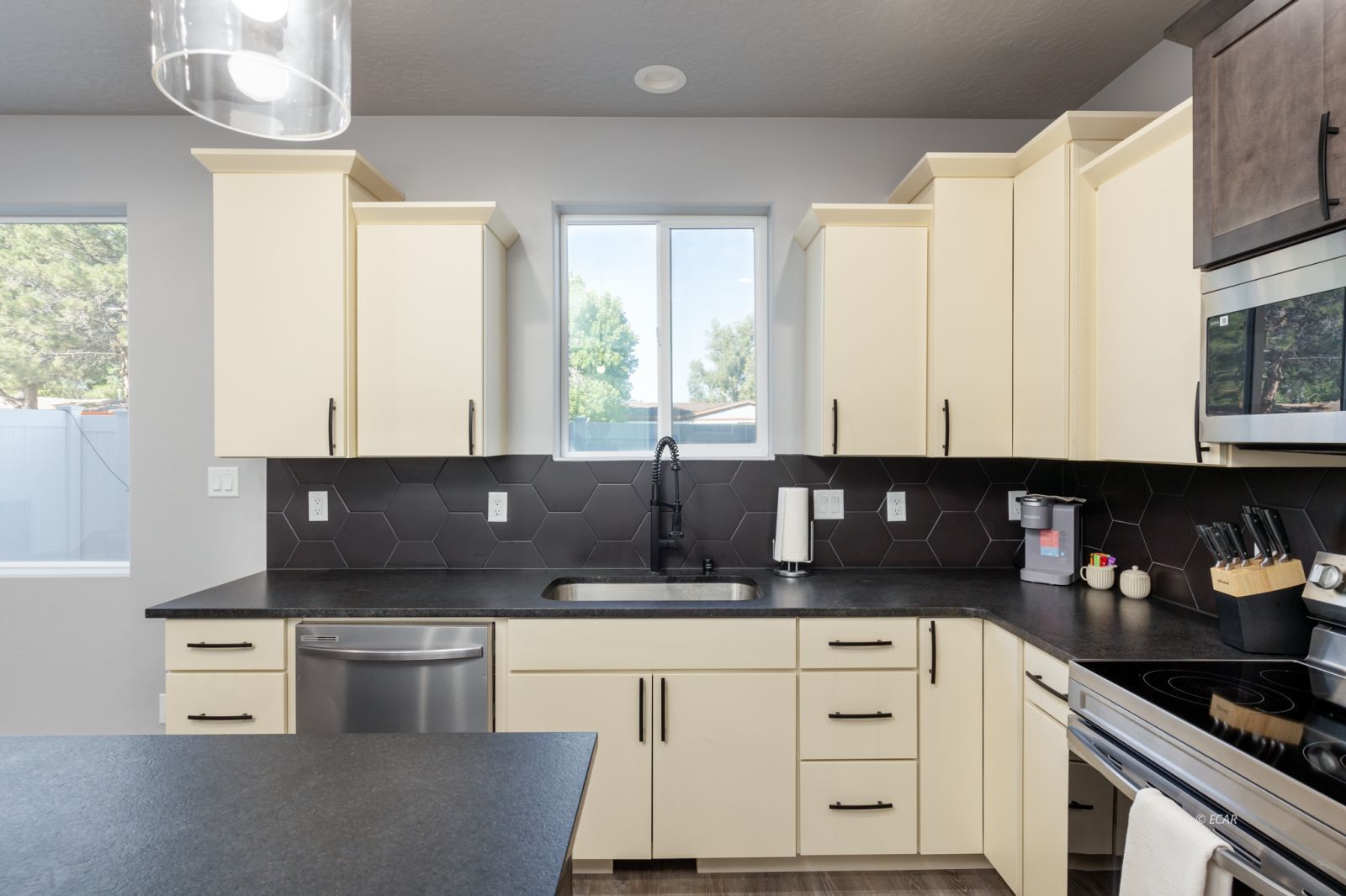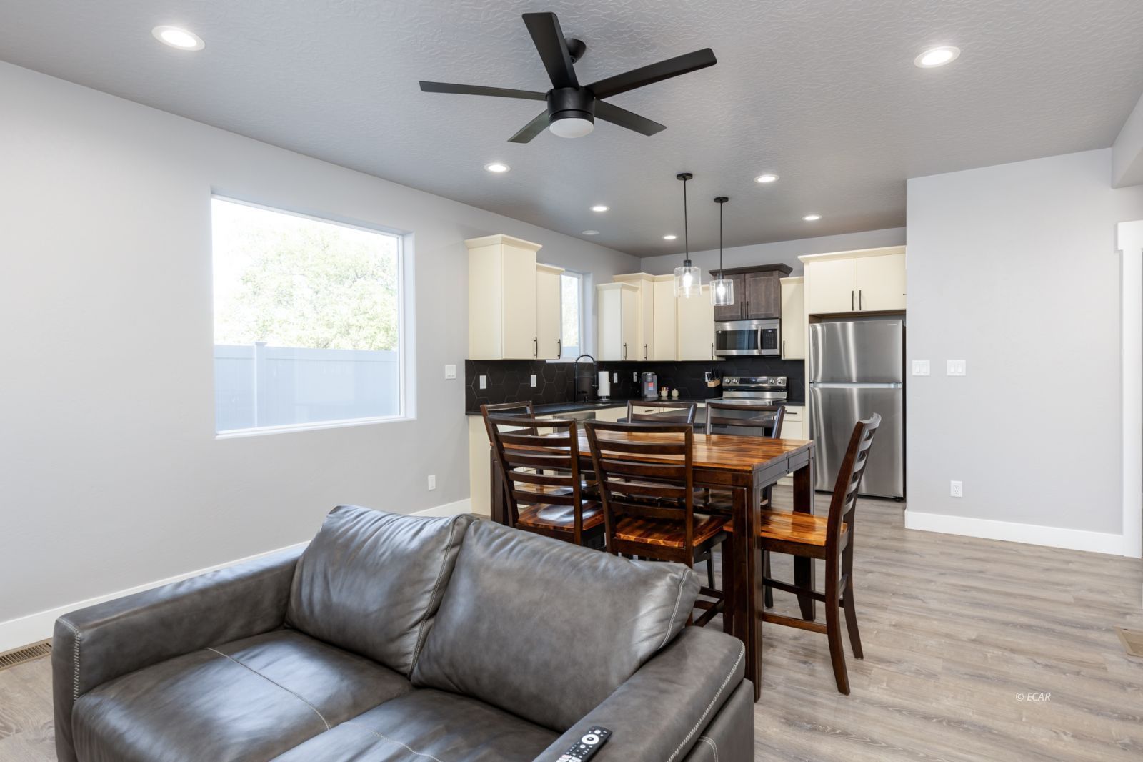 Discover a gorgeous townhome with an exceptional location. Nestled near Mountain View Park and a host of convenient amenities, this centrally located property boasts all the modern upgrades of contemporary construction.Spanning 1,647 square feet, the home features 3 bedrooms, 2.5 bathrooms, and a spacious 2-car garage. Enjoy premium Koinonia Construction finishes throughout, including soft-close painted cabinets, upgraded countertops, a stainless steel appliance package, a tankless water heater, and durable luxury vinyl plank flooring.The open-concept main living area includes a convenient half bath and ample under-stair storage for everyday practicality. Additional guest parking is readily available on this private street, and the property includes a fully fenced yard for added privacy and security. Owner/Builder is a licensed Nevada Real Estate Agent.